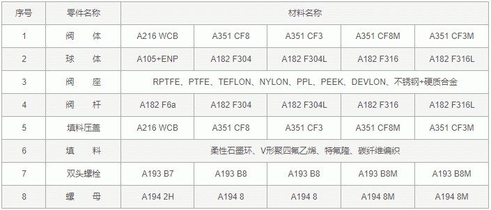 釜底球阀零件材料: