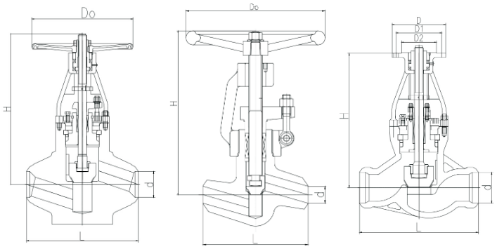 自密封锻造截止阀外形结构图: