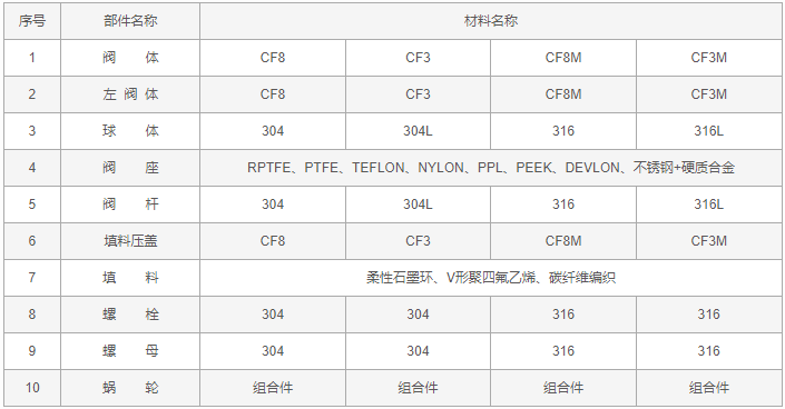 蜗轮不锈钢球阀零件材料: