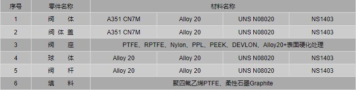 CN7M、Alloy20、N08020合金球阀零件材料: