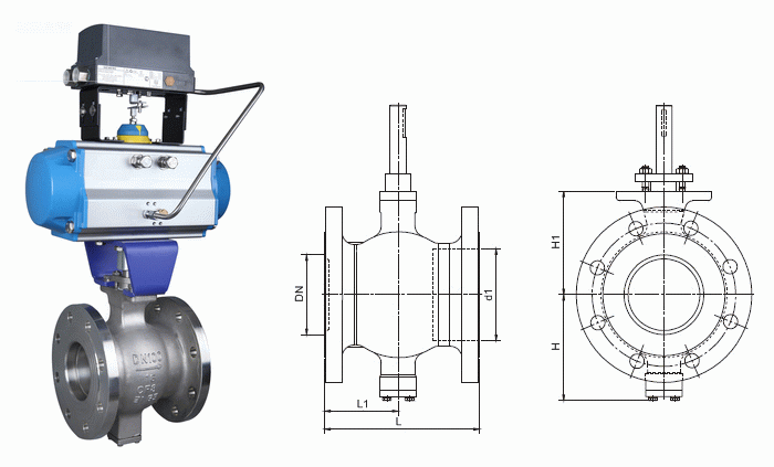 气动V型球阀外形结构图:
