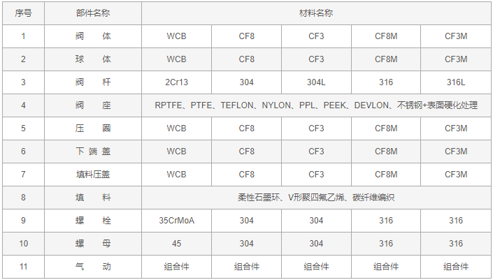 气动V型球阀零件材料: