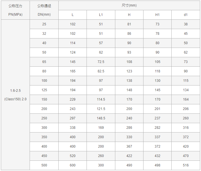 口径:DN25-500