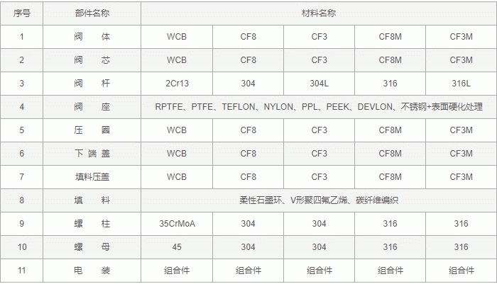 电动V型调节球阀零件材料: