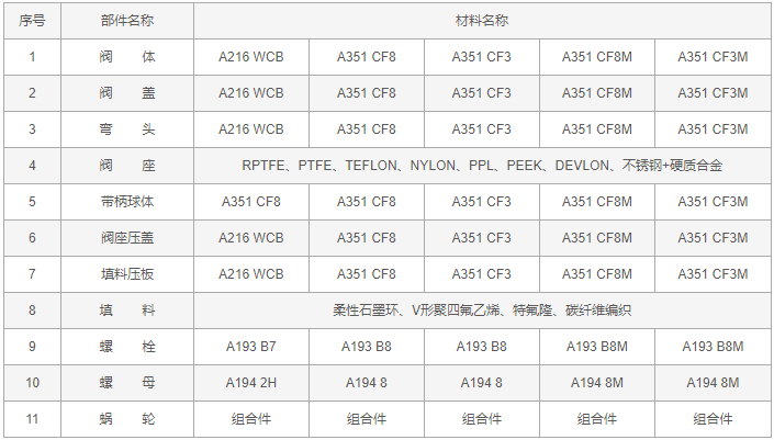 蜗轮Y型三通球阀零件材料: