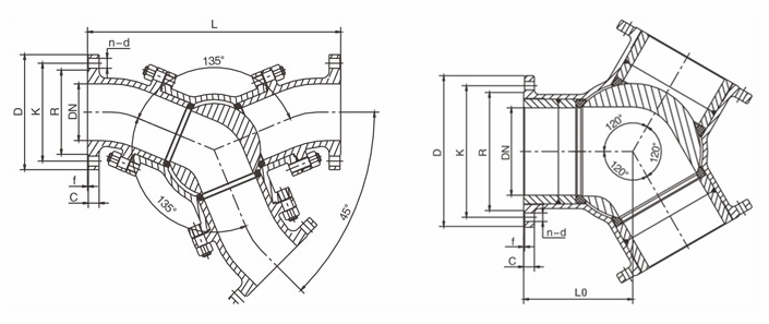 蜗轮Y型三通球阀由135度或120度Y型三通球阀和蜗轮驱动装置组成,它通过人力转动蜗轮上的手轮即可在阀杆上端施加一定的扭矩并传递给球体,从而改变介质流通的方向,实现对两种不同流向的切换。该阀阀体三个管口的流体通道之间被设计成互成120°或一进一出两通道间成135°夹角,球体与阀杆为一体结构,球体中有两个成120°或135°角并通过球中心点的通孔,这二个通孔的端口(球体端口)与阀体上的管口对应,并随着球体在120°或135°之间的转动实现进口与任意出口导通或关闭。