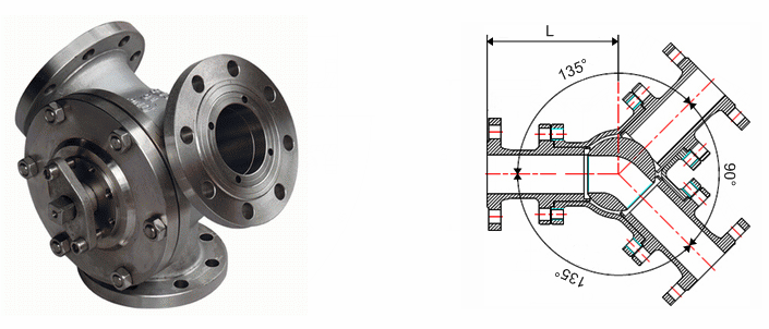 不锈钢Y型三通球阀流道形式为Y形,有成120度和135度角两种结构型式,其主体可根据不同的工况需求采用不锈钢CF8、CF3、CF8M、CF3M、316Ti及310S等材料铸造而成,其中CF3M适用于尿素及甲胺液等腐蚀性物料,而310S材质则主要安装在Y型管路输送系统中,用于800℃以下高温介质流向的切换。