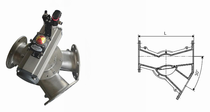 三通换向阀根据工况需要,将两出口端之间的夹角设计成30°、45°、60°、90°、120°及其他角度等,可配置AT、GT、AW双作用气动执行器。尊敬的客户!如果您需要订购我公司三通换向阀产品,请说明公称尺寸、压力等级、阀体材质、内件材料、流道角度、使用温度、法兰标准及法兰密封面形式等。