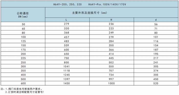 高压旋启式止回阀外形尺寸表: