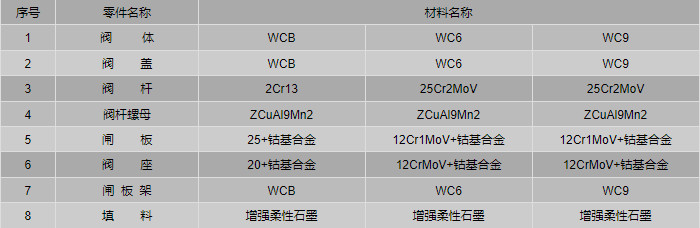 磅级电站闸阀零件材料: