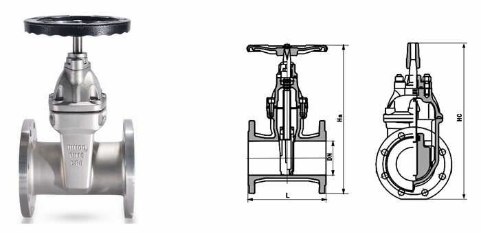 不锈钢软密封暗杆闸阀外形尺寸表: