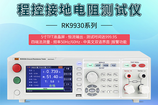 RK9930系列程控接地电阻测试仪输出电流采用硬件反馈、高速MCU控制技术,使输出电流稳定可靠。 能实时显示电流值和电阻值,并具有软体校准功能,配备PLC接口、可方便与计算机或PLC组成综合测试系统。 本仪器具有以下性能特点: